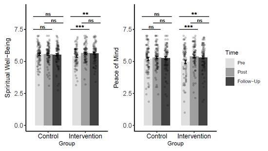 图为研究8敬畏干预对精神幸福感和心灵宁静的影响