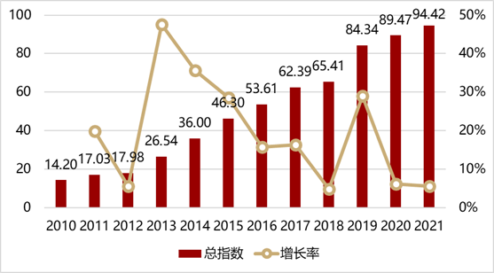 北京大学中国商业银行数字化转型指数从战略数字化、业务数字化和管理数字化三个维度,对 2010-2021年至少具有三年完整数据的银行进行指数构建。指数最终纳入246家各类银行,通过分析比较转型的进程、路径与效果,展现了中国商业银行数字化转型的总体趋势与特征。