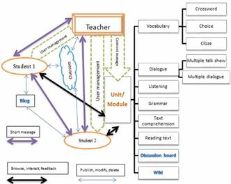 该系统基于英语教学单元,功能模块包括:多角色对话、词汇、听力练习、语法练习、阅读理解、英语阅读等。其中的英语聊天机器人(CSIEC),使用交流性反应机制产生机器人输出,为多篇国际权威期刊所引用,被称为“聊天机器人等人工智能技术应用于英语教学的开拓性研究”。