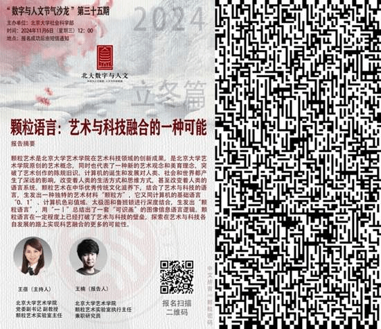 2024年11月6日下午,社会科学部在百周年纪念讲堂咖啡厅举行“数字与人文节气沙龙”立冬篇活动。本次活动是“节气沙龙”系列活动的第35期,主题是“颗粒艺术:艺术与科技融合的一种可能”。