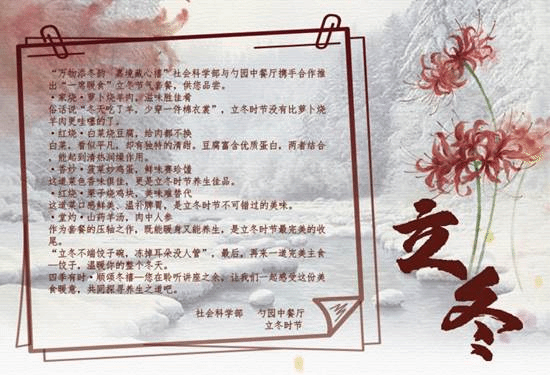 本次活动中,社会科学部继续与勺园中餐厅展开合作,应时而食,推出立冬节气特色美食供与会师生品尝。