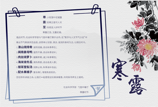本次沙龙中,与会师生踊跃发言、各抒己见,探讨人工智能传播的政治经济学研究问题。同时,社会科学部继续与勺园中餐厅合作,应时而食,推出寒露节气特色美食供与会师生品尝。