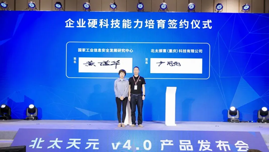 在工信部科技司的指导下,国家工业信息安全发展研究中心牵头编制了《企业硬科技能力建设通用要求》团体标准,并依托“科技产业金融一体化”专项整体布局,为技术先进、“硬科技”实力强的项目及企业提供支持。此次活动还举行企业硬科技能力培育签约仪式,黄蕴华与卢朓共同签署合作协议。黄蕴华希望北京大学重庆大数据研究院、北太振寰充分利用知识产权,推动科技成果转化,为产品升级与赋能各行业发展提供源源不断的驱动力。