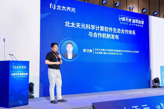 北太振寰CEO廖汉卿现场发布了全新北太天元生态合作体系与合作机制 ,详细介绍了高校产学研基地、联合实验室等合作模式,并分享了北太天元与杉数科技、摩尔线程等合作案例,提出北太天元将构建以需求方为主导的产学研深度融合创新体系。