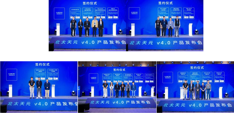 会上,卢朓、廖汉卿分别与北京信息科技大学、广东工业大学数学与统计学院、西北工业大学智能工业和信息化研究所、新疆大学数学与系统科学学院、厦门大学数学科学学院、湘潭大学数学与计算科学学院、中国人民大学数学学院,重庆市工业软件应用发展协会、中关村数智人工智能产业联盟,成都赢瑞科技有限公司、济南超级计算中心有限公司、浪潮计算机科技有限公司、摩尔线程智能科技(北京)股份有限公司、南通玛尔斯科仿真科技有限公司、澎峰(北京)科技有限公司、杉数科技(北京)有限公司、是石科技(江苏)有限公司、中国科学院超算中心等生态合作伙伴现场签署合作协议 。各方将携手共进,在学术研究与技术创新领域展开合作,共同塑造国产基础软件新未来。