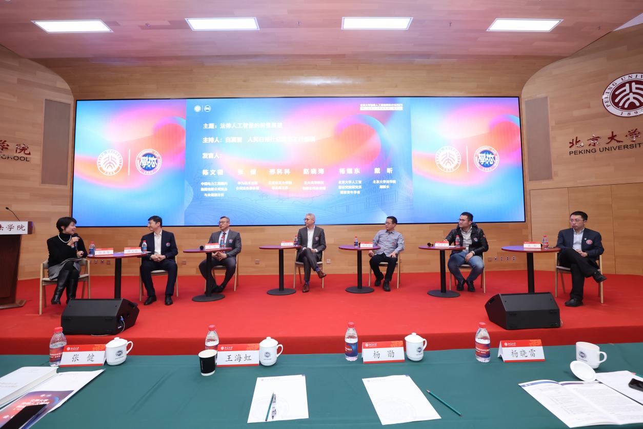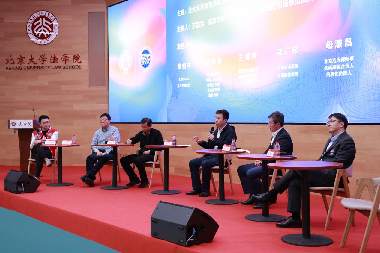 在圆桌论坛第二阶段,中国电力工程顾问集团有限公司法务与合规部主任陈文楷、华为技术有限公司法务部总裁张健、北京市元合律师事务所主任邢科科、北大英华科技有限公司总经理赵晓海、北京大学人工智能研究院研究员杨耀东、北大法学院副院长戴昕分别基于各自的体会和思考探讨了以“北大元法智能系统”为代表的法律人工智能技术在推动行业模式创新、促进技术迭代进步、助力法治社会建设等方面的巨大发展潜力和广阔应用前景。